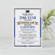 Great class reunion invitations in your school colours of blue and gold, that you personalise with all your celebration details for your big reunion event. This design features a light background with darker text, gold corner accents and a graduation cap & tassle bordering the event details. Your school name is prominently featured on a gold banner right in the centre.
