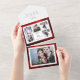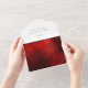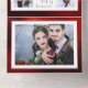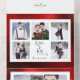 Classically chic tailored and very elegant multi-photo collage design featuring front template for five square photos, custom "Love & Joy" calligraphy graphics and text field with faux hammered metallic style gradient ruby red background. Also features additional photo template and complementary red backgrounds.