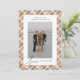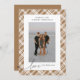 Spread holiday cheer to family and friends this season with our Classic Adorable Light Brown Tan Tartan Plaid Custom Photo Christmas Holiday Card. Featuring a timeless brownish gingham plaid design, this card is perfect for showcasing your favourite vertical or portrait photo, creating a truly personal touch. The reverse side offers space for a custom message, set against a matching colour background, which you can easily edit or remove to suit your needs. You can also customise the colours to complement your photo palette, making this card as unique as your holiday memories