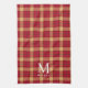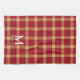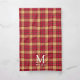 Personalized kitchen towel for the holiday season featuring classic style Christmas plaid with custom initial and family name.