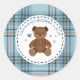 Classic Tartan Plaid Teddy Bear, Baby Boy Shower Round Sticker