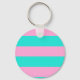 Classic Teal and Pink Striped Pattern Key Ring