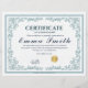 A classic certificate of achievement featuring an elegant teal ornamental border and refined typography. Ideal for employee recognition, academic awards, corporate appreciation, and professional milestones. This timeless design conveys professionalism, honor, and achievement, making it suitable for schools, offices, organizations, and formal ceremonies.