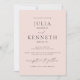 This classic wedding invitation with soft pink background, traditional wording, and modern black and white typography will always look fresh and chic. Feel free to edit it with your names and wedding date, place, and time. Matching reply and details cards, as well as day-of stationery, are also available.