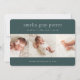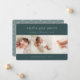 Elegant and classic birth announcement features three photos aligned side by side on a gender neutral forest green background. Personalise with baby's name, birth stats, and your family signature in crisp white lettering.