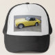 Classic, bright yellow, British Triumph TR6 convertible sportscar, with alloy wheels.