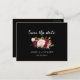 This classic tropical black burgundy save the date card is perfect for a rustic wedding. The artistic bordo marsala design features watercolor, green, pink, burgundy and blush roses assorted with greenery neatly arranged in a graceful and radiant flower bouquet