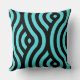 Classic Turquoise and Black Striped Wave Pattern Cushion