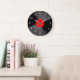A retro style red 45 record decorates this Rock & Roll clock. This record clock is a great decor item for a kitchen, basement, garage, retro decor, 1950's theme, vintage decor, etc... The design is from original art.