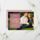 Elegant script and formal text make this black and white striped save the date perfect for any couple having a traditional wedding celebration. The design features one photo.