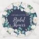 This classic white flowers navy bridal shower table confetti is perfect for a fall wedding shower. The elegant floral design features soft ivory and white roses, peonies, and chrysanthemum with touches of periwinkle blue watercolor flowers and green foliage. Personalise the name of the bride-to-be.
