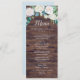 This classic white flowers rustic wedding dinner menu card is perfect for a fall wedding. The elegant floral design features soft ivory and white roses, peonies, and chrysanthemum with touches of periwinkle blue watercolor flowers and green foliage on a faux brown wood background. This menu can be used for a wedding reception, rehearsal dinner, or any event.
