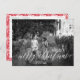 Merry Christmas Holiday Photo Postcard Script in white lettering. back has a pretty floral border. Lettering style. Big photo design. Happy, festive design. Its a wonderful life. flowers. red and white. floral frame.
