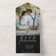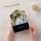 Introducing our classic all-in-one invitation which allows you to features a treasured picture of your choice as the background. This invitation is a simple black background with white text and is perfect for couples seeking a sleek, minimalist and classic aesthetic for their special day. The highlight of this invitation is the convenient QR code, allowing guests to RSVP effortlessly using their smartphones. For traditionalists, we've included a traditional paper RSVP option as well. With the all-in-one design, guests can easily tear away the RSVP section and send it back. Additionally, we've provided email information for RSVPs, ensuring a seamless and convenient RSVP process. Fully customisable, this invitation also offers the option to add a cherished photo, adding a personal touch to your wedding announcement. This template was created using a photo with a landscape orientation, and the customer, in all likelihood, will have an easier time with successful picture placement using a photo with a landscape orientation.