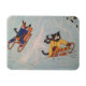 A photo magnet featuring an original Acrylic Cats 'Classic Winter Sledging' design.