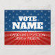 A stunning stars and stripes campaign postcard with very traditional features and icons. A neo-classical and federal design with faded blue stars and a ray of red stripes in the background. This upscale design includes a place for the candidates' name, position and website. The bold white type makes this an easy-to-read design with all the information needed to promote your candidate or issue. A great design for local elections - city council, school board and other regional positions.