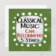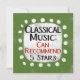 A funny typographic design that says "Classical Music: Can Recommend, 5 Stars". It's black and red text on a white rectangle with funky, playful white dots surrounding it, all on a green background.