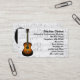 A musician or in the music industry, or just love music, you can let the world know with this business card featuring a classical guitar set against a musical score.