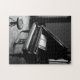 A puzzle to frame with a photo of a beautiful old classical piano, a vintage style in black and white.