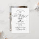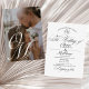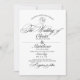 Modern stylish black and white minimalist wedding invitation with an elegant handwritten font with curls and a monogram of the bride and groom. Classy and elegant, simple and modern invitation.