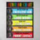 use a clothespin to let students know where they are supposed to be at - give warnings when they are not behaving as necessary. Features an eye-catching design to draw in student's eyes to ensure they READ and REMEMBER the classroom behaviour guidelines. A great poster to decorate the classroom - nice bright colours and a faux style chalkboard background.