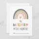 Adorable Valentine's illustration of a rainbow with a red heart with the phrases "You Brighten " and "My day, Valentine". The design features a girly pastel pink, yellow and green colour palette.