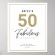 Simple black, white and gold "50 and Fabulous" birthday party sign with classy and elegant typography. Customise it easily with age, name, party date and venue.