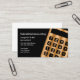 Accountant business cards in a classy design that includes a gold looking calculator in the background and simple text layout you can customise with your business information. Designed for a CPA, accounting firm, or tax accountant.
