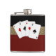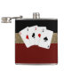 Classy red, black and gold background and four aces poker flask. You can move, re-size and delete the poker cards. This poker and gambling flask design works well for a mans birthday gift, groomsman gift, groom, or any gambling and poker fan!
