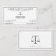 Lawyer business cards in a stylish, elegant template design with scales of justice logo symbol.