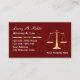 Nice and classy attorney business cards you can customise with simple yet powerful design that includes a scale of justice, easy text layout and background colours you can customise, and fancy script name text font you can also change. Designed for a law office, attorney, law practice, or barrister if you're from England.