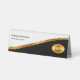 Classy monogrammed Attorney law office desk name plaque designed with a gold and black coloured modern design element and gold coloured scale of justice emblem. Presents you and your office staff in a professional way with these budget friendly design available in bulk or one off printing. Presented on quality plastic tent signs.