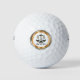 Attorney theme promotional golf balls with a classy look that includes a gold and silver lawyer emblem that includes a scale of justice symbol with text you can personalise with your business or professional name.
