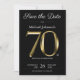 Classy Black and Gold 70th Birthday Party Save the Date. Simple yet classy birthday save the date card with the birth year milestone in solid gold text effect! This is an editable template and could be used for both male and female. Contact me if you have any questions, I will do my best to help!