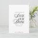 This classy elegant save the date card in black and white features a minimalist design with "save our date" styled in a mixture of classic text and elegant calligraphy script that lends a sophisticated, classy style with old money vibes. The design also features a place to add your photo that covers the entire back of the card.