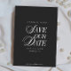 This classy elegant save the date card in black and white features a minimalist design with "save our date" styled in a mixture of classic text and elegant calligraphy script that lends a sophisticated, classy style with old money vibes. The design also features a place to add your photo that covers the entire back of the card.