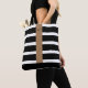 A black and white striped monogrammed tote. This can be used for the beach or shopping. Classy black and white with taupe coloured stripe. The monogram stands out. Great for mother's day or birthday gift too!