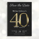 Classy Black Gold 40th Birthday Party Save The Date