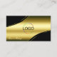 Classy Black Gold Curved Decor Lines Logo QR Code Business Card