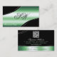 Classy Black Green Curved Lines Monogram QR Code Business Card