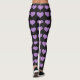 A classy pair of black leggings with a pattern of fuzzy , swirly purple hearts .