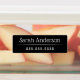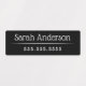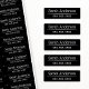 Elegant, waterproof property labels with two lines of customisable text, for example your name and telephone number. White text on black background. You can change fonts and colours in the design tool.