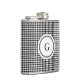 Classy black white houndstooth pattern monogram hip flask