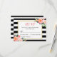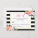 Classy Black White Stripes Floral RSVP Reply Card.