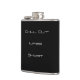A classy black hip flask with text in off white reads "Chill Out Lifes To Short" Trendy and Simplistic, perfect for weddings, best man and groomsman gifts, birthdays, christmas event occasions. For him or her.