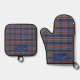 Classy Blue Burnt Orange Scottish Tartan Christmas Oven Mitt & Pot Holder Set