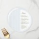 Elevate your table setting with this stylish round half-circle menu card, designed to be cut down the center to create a unique, modern presentation. The front features a clean layout with soft blue vertical stripes and elegant typography—perfect for contemporary weddings, rehearsal dinners, or upscale events.