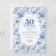 Classy Blue Toile de Jouy Floral 50th Birthday Invitation