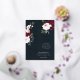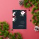 Bold, elegant, and romantic wedding invitation featuring our painted elegant watercolor flowers. Beautiful bold floral arrangements with deep burgundy, rich navy blue, and blush pink flowers with accents of lush green sage leaves and greenery. Florals are arranged in beautiful bouquet arrangements to create this bold and elegant floral design. “The Wedding of” is displayed in an elegant typography design with the wedding invitation details beautifully arranged. Watercolor florals painted by Moodthology.
