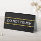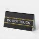 Classy gold black and white Do Not Touch desk signs you can use to discourage event guests, customers, school attendees, or sporting event attendees from touching anything you do not want touched. Includes printing on both sides in simple budget friendly professionally designed tent style signs with gold tone design elements.